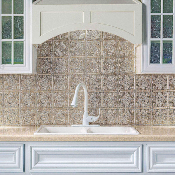 Fasade 18in x 24in Traditional 1 Vintage Metal Backsplash Panel 5pk