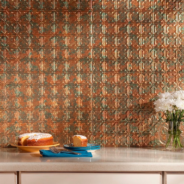 Fasade 18in x 24in Traditional 6 Copper Fantasy Backsplash Panel 5pk