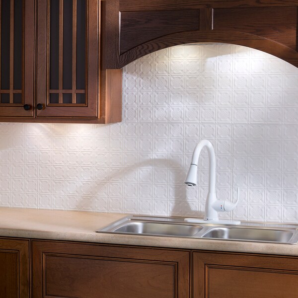 Fasade 18in x 24in Traditional 6 Gloss White Backsplash Panel 5pk