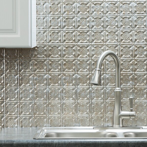 Fasade 18in x 24in Traditional 6 Vintage Metal Backsplash Panel 5pk