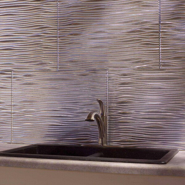 Fasade 18in x 24in Waves Brushed Aluminum Backsplash Panel 5pk