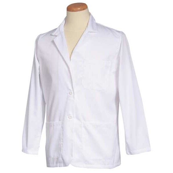 Consultation Jacket, Gender Men's, Style Consultation Jacket, Material 35 Percent Combed Cotton Poplin, 65 Percent Polyester, Fabric Weight 5 oz, Front Closure Type Buttons, Number of Outside Pockets 2, Number of Inside Pockets 2, Color White, Length 30 in, Maximum Chest Size 51 1/4 in, Size L, Features Left Breast Pocket, Includes Two Lower Pockets, Two Inside Pockets