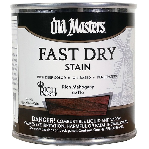 Old Masters Fast Dry Stain is a high quality, interior oil-based stain that applies easily and enhances the wood's natural grain with its intensified depth of color and clarity. Its rapid dry time and superior performance allow every project to be topcoated more quickly, granting a more efficient turnaround. The stain may be brushed, sprayed, or wiped onto the surface. Makes a great alternative to lacquer stains. Experience optimal results on all interior wood surfaces such as cabinets, doors, floors, furniture, and woodwork.