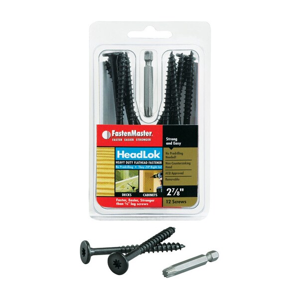 The HeadLOK flat head fastener requires no predrilling and offers higher design shear than 3/8 inch lag screws. The SpiderDrive System contains 8 points of contact, maximizing bit fit and reducing stripping.
