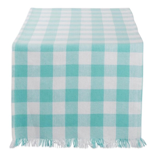 14 x 72 in. Aqua Heavyweight Check Fringed Table Runner