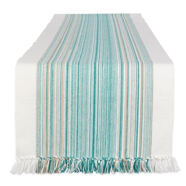 14 x 72 in. Teal Blue Striped Fringed Table Runner