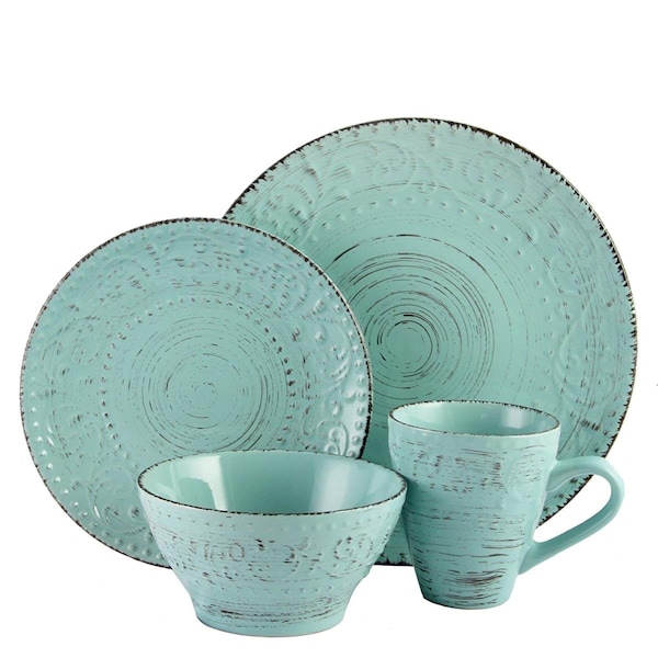 Malibu Waves 16-Piece Dinnerware Set in Turquoise