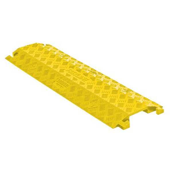 Cable Protector, Number of Channels 1, Cable Protector Channel Height 1 in, Channel Width 4 in, Width 10 7/8 in, Cable Protector Height 1 1/2 in, Connection Style L-Connector, Length 3 3/16 ft, Color Yellow, Material Polyurethane, Max. Cable Dia. 1 in, Texture Smooth