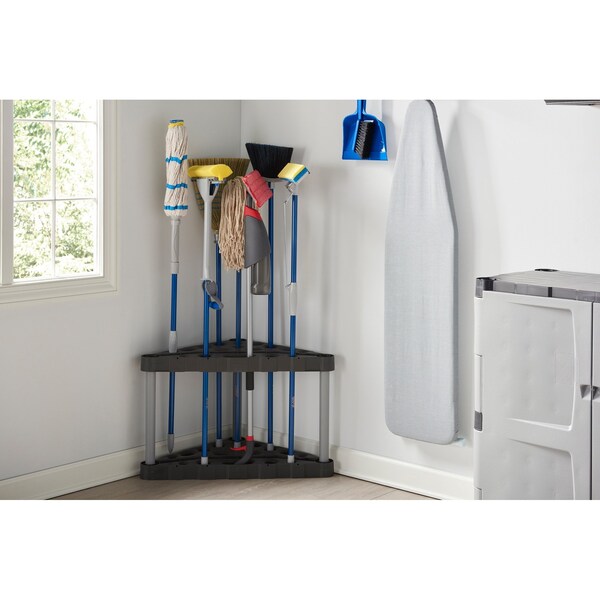Tool Tower Rack, Color Gray, For Product Type Janitorial Tools, Overall Length 32 in, Overall Width 19 3/8 in, Overall Height 20 in, Holds (30) Tools, Features Fits Corner; Can Be Anchored to Wall, Includes Mounting Hardware No, Material Plastic, Mounting Hardware Included Not Applicable