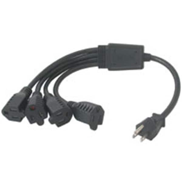 Extension Cord Adapter, 18 AWG, 4 Outlets, 5-15R, 5-15P, 3 ft