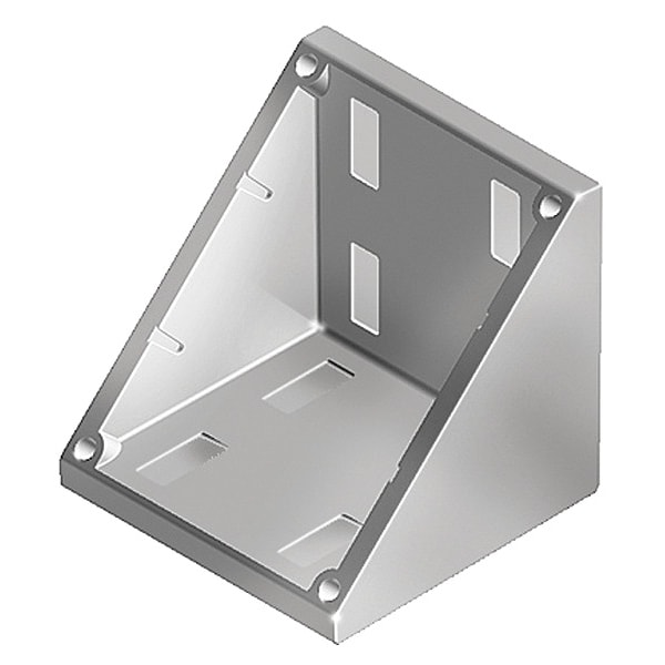 Inside-Corner Bracket, Gray, Unfinished, Number of Mounting Holes 8, Overall Height 76 mm, 9 mm, Not Applicable, Overall Length 76 mm, Overall Width 69 mm, Fastener Thread Length 25 mm, Aluminum, Fastener Thread Size M8, Inside Corner Bracket Style Open, Includes Fasteners Yes, 40 Series, System of Measurement Metric, For Profile Width/Height 80 mm, Connection Angle, For Profile Type Double, For Slot Width 8 mm, Includes (8) Flange Nuts, (8) Hammer Head Screws