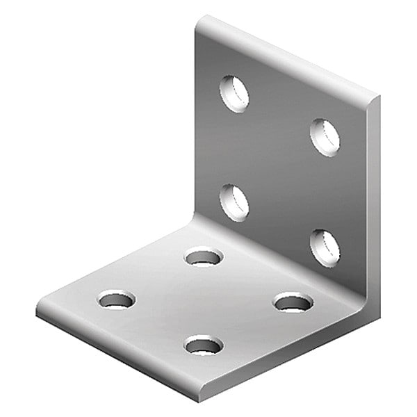 Wide Inside-Corner Bracket, Gray, Anodized, Number of Mounting Holes 8, Overall Height 90 mm, 9 mm, Not Applicable, Overall Length 90 mm, Overall Width 86 mm, Aluminum, Inside Corner Bracket Style Open, 45 Series, System of Measurement Metric, For Profile Width/Height 90 mm, Connection Angle, For Profile Type Double, For Slot Width 10 mm