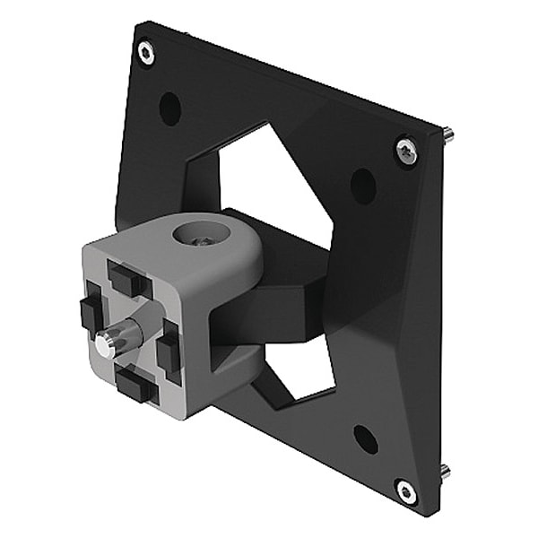 Monitor Mount, Polyamide, Zinc-Plated, Overall Height 113 mm, Overall Length 113 mm, Overall Width 112.8 mm, Fastener Thread Size M4, M8, Mounting Hole Diameter 4.6 mm, 9 mm, Monitor Mounting Type 2-Way Pivot Mount, Adjustability Rotate, Black/Gray, Number of Mounting Holes 9, Includes Fasteners Yes, Projection 55 mm, System of Measurement Inch, Metric, For Profile Type Single, For Slot Width 8 mm, 10 mm, 15 Series, 40 Series, 45 Series