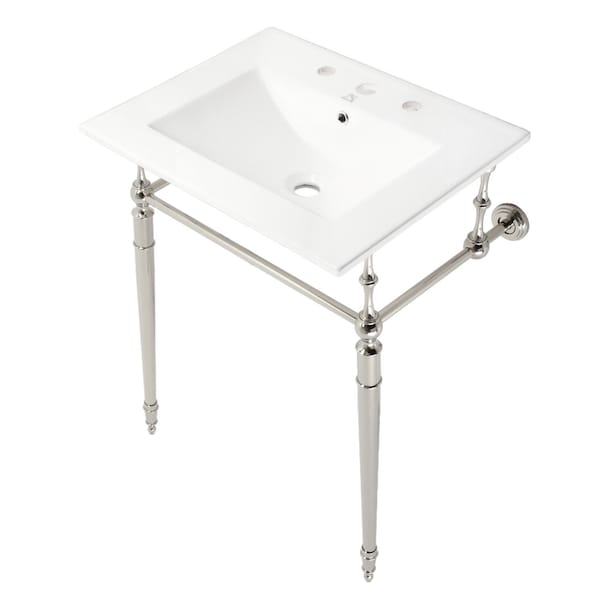 24" Console Sink with Brass Legs (8", 3 Hole), White/Polished Nickel