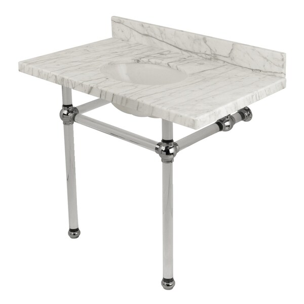 With a beautiful carrara marble counter top, this console sink set is a long lasting, durable, and elegant addition to your bathroom. A fabulous alternative where space is limited or tight, these sinks are also known for their wheel-chair accessibility, making them friendly for the whole family. With different shades and natural designs, otherwise known as veining, no two sinks will be alike. Also for your convenience, anti-slip rubber pads are included with the acrylic legs to ensure steadiness. Water supply kit, drain assembly, and the faucet are sold separately.