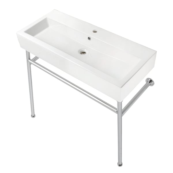 39" Porcelain Console Sink with Stainless Steel Legs (Single-Hole), White/Chrome