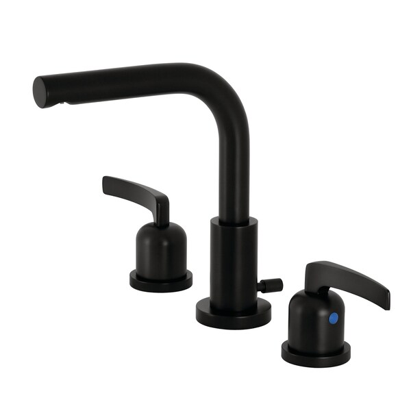 The innovative, sleek design of this faucet will enhance contemporary decor Ideal for more spacious bathrooms, widespread faucets are more spread apart and feature a 3-hole installation. The Centurion 8-Inch Widespread Bathroom Faucet with Brass Pop-Up and its sturdy brass construction and premium matte black finish are guaranteed to glamorize your home. Upgrade your contemporary home into a place of elite sophistication with this faucet. A matching finish drain is also included.