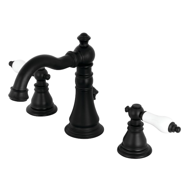 Orchestrated with the flow of the ever-present porcelain lever handles, this faucet prevails a whimsical tune of design to accompany its traditional detailing. Ideal for more spacious bathrooms, widespread faucets are more spread apart and feature a 3-hole installation. The American Patriot 8" widespread bathroom faucet with retail pop-up and its sturdy brass construction and premium matte black finish are guaranteed to glamorize your home. A matching finish drain is also included.