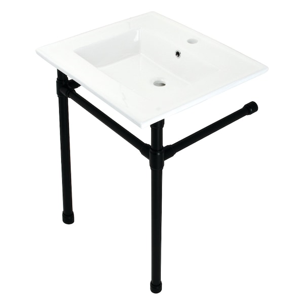 Dreyfuss 25" Console Sink W/ SS Leg (Sgl Faucet Hole), White/ Black