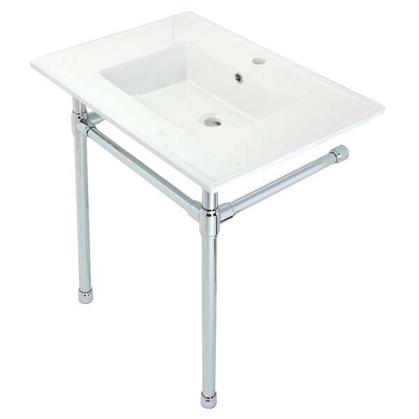 Dreyfuss 31" Console Sink W/ SS Leg (Sgl Faucet Hole), White/ Chrome