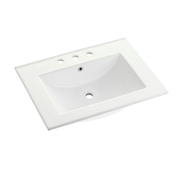 Ultra Modern 24"x18" Ceramic Vanity Top (8" Faucet Drillings), White