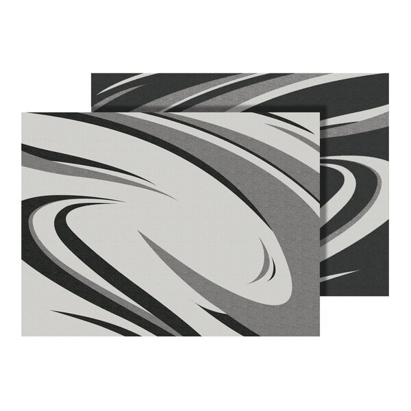 Modern Swish Design, 12 Foot Length x 9 Foot Width, Black/ Gray, Polypropylene, Reversible Fabric, Mold And Mildew Resistant, Without Grommets, With Carry Bag, With Corner Tie-Downs