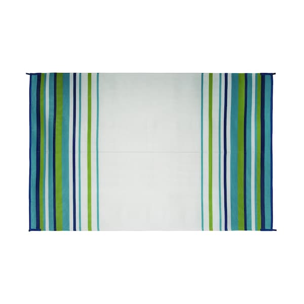20 Foot Length x 8 Foot Width, Aqua/ Navy/ Lime/ White Stripe, Polypropylene, Mold And Mildew Resistant, Without Grommets/ Storage Bag, With Corner Tie-Downs