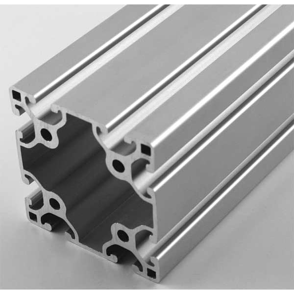 T-Slot Profile, Inch, Quad, Silver, Weight per Unit Length 2.56 lb-ft, Bore Diameter 17/64 in, Extrusion Texture Smooth, Nominal Length 8 ft, Aluminum, Number of Open Slots 8, Profile Height 3 in, Profile Width 3 in, Overall Length 96 in, 15 Series, Square, Slot Width 0.32 in, Yield Strength 25,000 psi, Relative Profile Weight Lite, Slot Location Adjacent-Sides, Finish Anodized, Temper T6