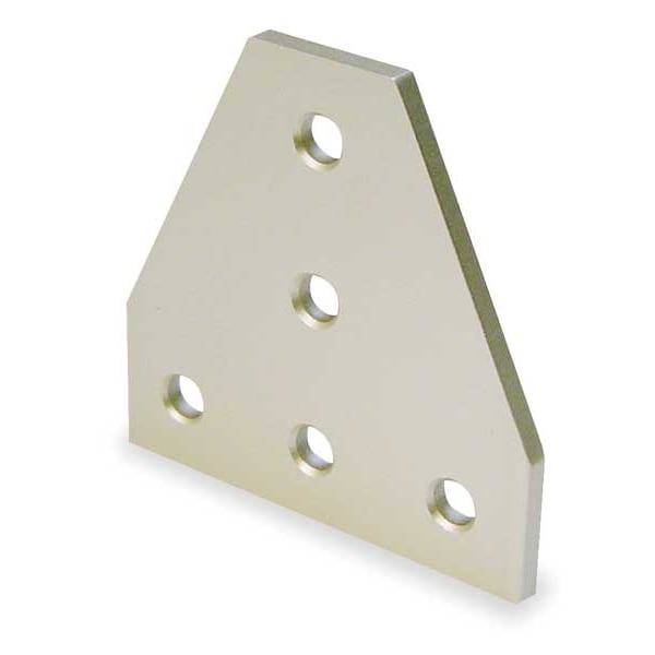 T Flat Plate, Silver, Anodized, Number of Mounting Holes 5, Overall Height 3 in, Slide-In, Overall Length 3 in, Overall Width 3/8 in, Aluminum, Inside Corner Bracket Style Tee, 10 Series, System of Measurement Inch, For Profile Width/Height 1/4 in, Joining Plate, For Slot Width 17/64 in