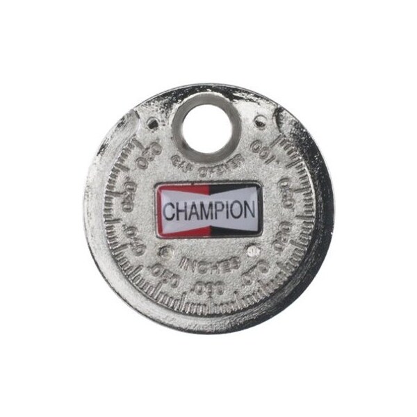 Champion Silver Dollar Spark Plug Gap Gauge Shows Inch & Millimeter Ranging From .020 To .100 & 0.6 To 2.4 mm.