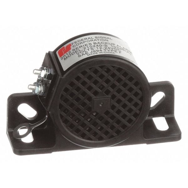 Vehicle Backup Alarm, Alarm Type Fixed, Alarm Tone Type Tonal, Maximum Sound Level 102 dB, Operating Voltage 12-24V DC, Minimum Sound Level 107 dB, Overall Length 4 1/8 in, Overall Width 1 5/16 in, Overall Height 2 5/8 in, SAE Type Rating Type F, Connector Type Stud Connector, Mount Type Bracket, IP Rating Not Applicable, Series 2012 Series, Speaker Direction Forward-Facing, Vehicle Class Not Applicable, Color Black, Housing Material Glass/Nylon, Current 0.5 A, Manufacturer Warranty 3 yr