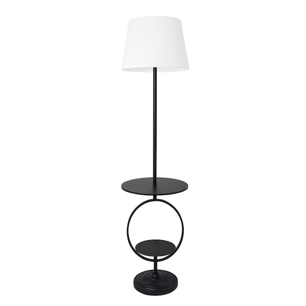 Bedside Nightstand End Table Dual Shelf Decorative Floor Lamp, Black