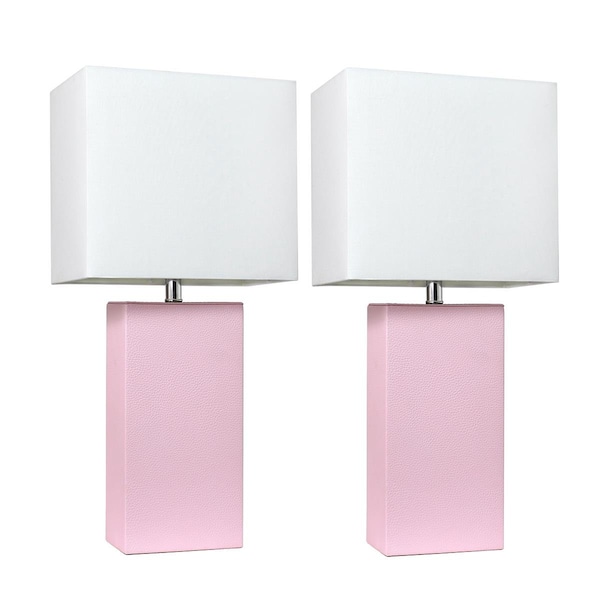 Modern Leather Table Lamps, Blush Pink with White Fabric Shades, 2PK (Discontinued)