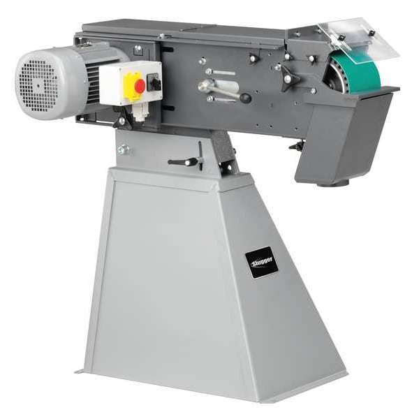 Belt Grinder, Product Type Belt Grinder, Voltage 440 V, Phase Three-Phase, Horsepower 5 hp, Belt Width 6 in, Belt Length 79 in, Belt Table Width 14 1/2 in, Belt Table Length 6 in, Dust Collection Port Size 3 1/2 in, Current 9 A, Includes Grinder Without Base, Plug and Grinding Belt