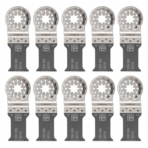 Oscillating Tool Blade, Blade Type Plunge Cutting, Precision Cutting, Connection Style Starlock, Blade Shape Straight, Blade Material Bi-Metal, Blade Width 1 1/8 in, Blade Length 2 in, Overall Length 3 13/16 in, Maximum Oscillations per Minute 19,500, Primary Material Application Metal, Materials Cut Aluminum, Copper, GFRP, Plastic, Sheet Metal, Cut Style Straight Cut, Cutting Edge Style Toothed, Edge Material Bi-Metal