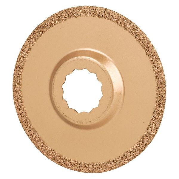 Oscillating Scraper Blade, Scraper Type Grout Removal, Blade Type Grout Removal, Oscillating Tool Accessory Type Grout Removal Blade, Blade Shape Round, Blade Diameter 3 5/32 in, Blade Width 3 1/8 in, Blade Length 13/16 in, Overall Length 7 1/8 in, Maximum Oscillations per Minute 19,500, Connection Style 12-Point, Direct Fit For Tool Brand Fein Multimaster Series, Compatible with Adapter Bosch, Fein, Primary Material Application Grout, Application Grout, Very Hard Epoxy Resin or Cement Joints
