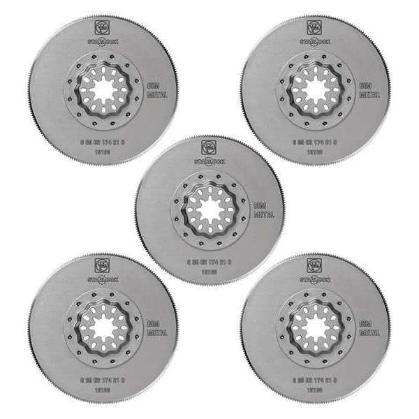 Oscillating Tool Blade, Blade Type Long Cutting, Connection Style Starlock, Blade Shape Round, Blade Material Bi-Metal, Blade Diameter 85 mm, Blade Width 3 3/8 in, Blade Length 13/16 in, Overall Length 3 3/8 in, Maximum Oscillations per Minute 19,500, Primary Material Application Soft Metals, Materials Cut Copper, GFRP, Plastic, Sheet Metal, Wood, Cutting Edge Style Toothed, Edge Material Bi-Metal