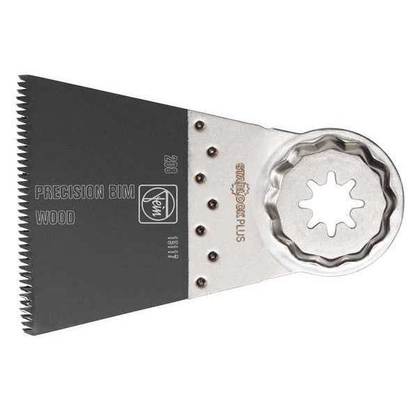 Oscillating Tool Blade, Blade Type Precision Cutting, Connection Style Starlock Plus, Blade Shape Straight, Blade Material Bi-Metal, Blade Width 2 9/16 in, Blade Length 2 in, Overall Length 3 13/16 in, Maximum Oscillations per Minute 19,500, Primary Material Application Wood, Materials Cut Wood, Cut Style Straight Cut, Cutting Edge Style Toothed, Edge Material Bi-Metal, Compatible with Adapter Bosch, Fein