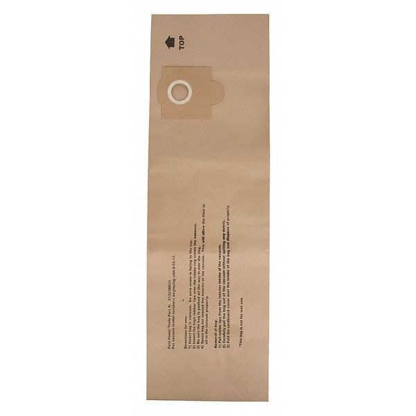 Vacuum Bag, For Vacuum Type Shop Vacuum, Fits Vacuum Brand Fein, Bag Filtration Type Standard, Filter Efficiency 99.5 Percent at 5 microns, Bag Material Paper, Ply Count 1-Ply, Bag Pickup Type Dry, Bag Reusability Disposable, Height 2 1/2 in, Length 1 in, Width/Diameter 16 1/2 in, Package Quantity 3