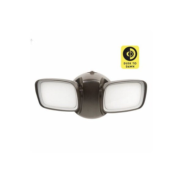 28W, Dual, LED Flood Light Fixture, Dusk To Dawn, 2000 Lumens, 5,000 Kelvin Color Temperature, Wall Or Eave Mountable With Tool Free, Self Locking Adjustable Heads That Can Rotate 180 Degree, Sturdy Construction Along With UV Protected Shatter Resistant Lens Provides Enhanced Durability To Ensure The Long Life Of The Fixture, Energy Efficient, Produces Even Light Distribution, No Bulb Replacement Rated to last 50,000 Hours