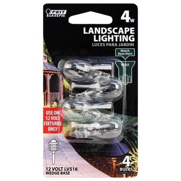 This Feit Electric 4-watt T5 wedge base Incandescent light bulb is perfect for landscape lighting applications. It is suitable for damp locations and can only be used 12-Volt lighting fixtures.