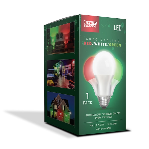 Feit A19 E26 (Medium) Auto Cycling LED Bulb Green/Red/White 2 Watt Equivalence 1 pk