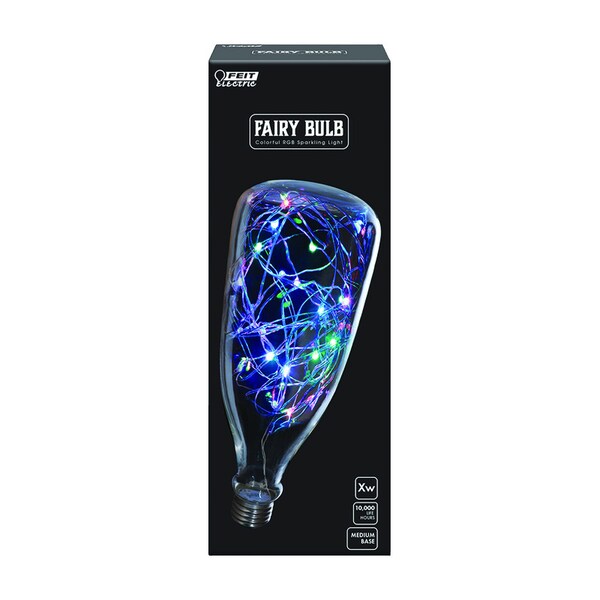 Create stunning pendant lights and party lights with red, green, and blue LED Bottle Fairy Light Bulbs from Feit Electric. These unique clear glass decorative bulbs with color-changing mini-LED lights install into any medium base socket for a distinctive look to any indoor space. These bulbs are damp rated, for indoor locations and covered outdoor use and are rated to last 20,000 hours.