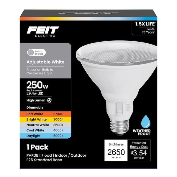 Feit PAR38 E26 Medium LED Bulb Adjustable White 250 Watt Equivalence