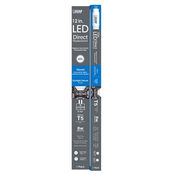 Feit T5 Daylight Deluxe 12 in. Bi-Pin Linear LED Linear Lamp 8 Watt Equivalence 1 pk