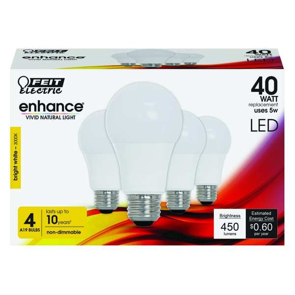 LED, 5 W, A19, Medium Screw (E26), PK4