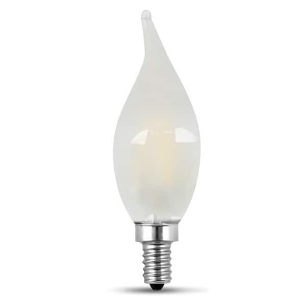 Enjoy all the benefits of advanced LED energysaving technology with the Feit Electric BPCFF40950CAFIL2 2Pack 40 W flame tip LED light bulbs This 5000K daylight bulb is dimmable and will replace 40 W incandescent bulbs It produces a similar light output, uses 33 W of electricity and up to 92 less energy than a standard incandescent light bulb Get instant on to full brightness with relatively cool running performance Feit Electric flame tip light bulbs have an average life of 15,000 hrs or 137 years are RoHS compliant and are 100 mercury free Choose a dependable decorative chandelier bulb for residential or commercial applications