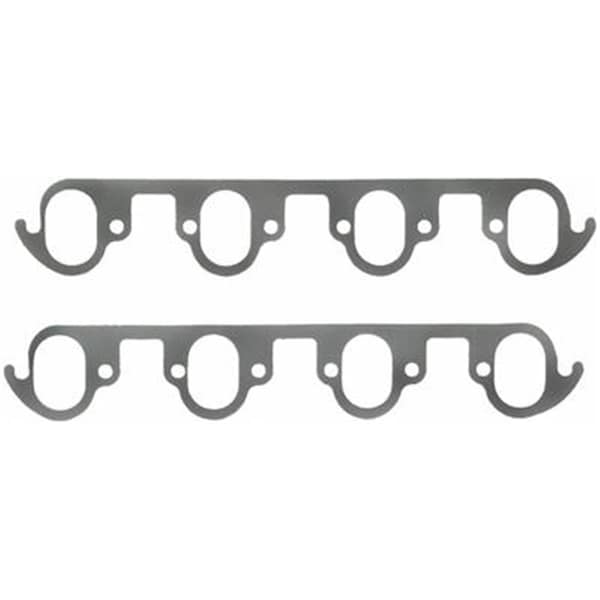 Fel-Pro performance exhaust header gaskets the performance version of an exhaust manifold gasket resist blowout and burnout and provide good exhaust flow. Fel-Pro performance exhaust header gaskets consist of a high density fiber facing material attached to both sides of a perforated steel core. This design provides a durable gasket that will seal slightly warped surfaces. Also we use an antistick coating that allows the gasket to move without sustaining damage and helps the gasket accommodate the expansion and contraction of the head and headers. Fel-Pro designs the exhaust header gaskets with slotted bolt holes so you can easily slip the gasket in place and then tighten the bolts. The high density fiber retains the torque to ensure the seal. Features -Material - Perforated Steel Core With Anti Stick Coating -Port Shape - Rectangular -Port Length - 2.35 in. -Port Width - 1.55 in. -Fits for various make models year