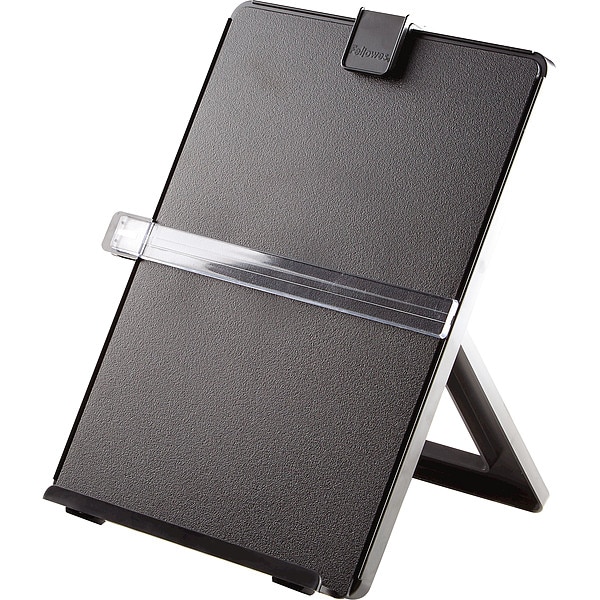 Copy Stand, Mounting Style Desktop, Sheet Capacity 125, Height 11 1/4 in, Width 10 1/8 in, Color Black, Material Plastic, Features Adjustable Tilt and Height, Folds Flat for Storage, Includes Removable Lineguide