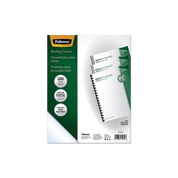 Fellowes, Crystals Presentation Covers With Square Corners, 11 X 8 1/2, Clear, 200PK (Discontinued)